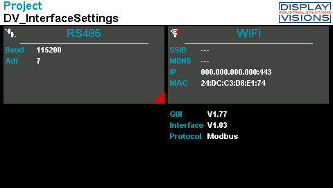 HMI DesignerDeploymentModbus RS485 (1) Baudrate 115200 (2) Modbus address 7 Project hardware settings Module interface settings Deployment settings