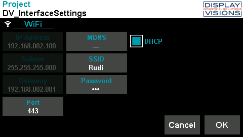 HMI DesignerDeploymentShort/Small protocol WIFI (1) Port 443 (2) IP 192.168.2.100 Project hardware settings Module interface settings Deployment settings