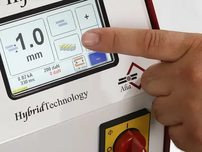 Durch eine intelligente Steuerung liefert die HySpot beste Schweißpunktqualität mit hoher Prozesssicherheit. Die Qualität der Schweißpunkte ist hierbei vergleichbar mit denen aus dem Herstellungsprozess. Die Punktschweißmaschine ist in drei verschiedenen Leistungsklassen mit 38 kVA, 46 kVA und 47 kVA erhältlich und arbeitet in neuester Inverter-Technologie mit variablen Frequenzen. Für eine maximale Standzeit sorgen wassergekühlte Elektroden. Die Bedienung und Programmierung erfolgt mit einem grafischen Touchdisplay. Dieses sorgt zudem für die Speicherung der Schweiß- und Auftragsdaten um Qualitätsnachweise zu sichern.